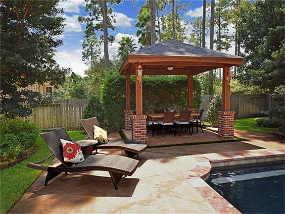 Immaculate Village Builders 'Florence' plan. Dramatic 2 story entry & den, paneled study w/wood floors, gourmet kitchen with granite countertops, large breakfast bar, built in refrigerator & walk in pantry. Master suite w/wood floors, Sunroom with French doors, plantation shutters, utility room w/sink, large secondary bedrooms, walk in attic storage, media room & game room.3 car tandem garage w/premier flooring & cabinets. Exceptionally private backyard w/pool, spa, gazebo & summer kitchen.