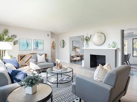 Welcome to this classic, single level, ranch style home with many recent upgrades. Vacation at home in your own private, tropical backyard complete with a free-form pool and a large hardscape area with a gas fire pit perfect for pool side lounging and entertaining friends and family; all on over half an acre. The sun dappled and inviting home has 3 bedrooms and 3 full bathrooms, a living room and family room each with fireplaces, and a spacious and open light filled kitchen perfect for large family gatherings. Situated atop a knoll in a quiet neighborhood, this home offers peek-a-boo ocean views. Other amenities include garages for 3 cars and a huge driveway for all of your toys. First time on the market in over 3 decades