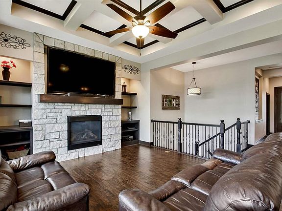 Perfectly situated on a best lake lot in The Woods at Auburn Hills addition. Perfect location, one owner home, it backs to a beautiful private lake, all the latest and greatest materials and floor plan were used in this home. Open floor plan, lots of natural light, high ceilings, perfect and flow well floor plan, everything is where it's supposed to be. Great curb appeal, low traffic street. Must see to appreciate. Walk out basement, room to finish for another 2 bedrooms, office, bathroom and 2 living spaces in the basement. Only minutes away from everything yet it feels like away from everything. The view is beautiful everywhere you look. Details: Desirable location and tons of upgrades. Custom built by Robl construction in home 2016, major equity opportunity with the basement and bonus room being ready to finish or leave unfinished and enjoy a lower tax rate. privacy and vacation views 4 car oversized garage, large oversize garage and patio, a bonus room with window and stairs right above the garage is perfect for a home office, pre-wired for HVAC and Cat5e. Cat 5e throughout the house. Granite counter tops throughout the house, coffee bar, large walk in pantry, all Kitchen Aid appliances stay including 2 ovens and a gas cooktop. High ceilings, lifetime warranty windows. Brick, stone, with concrete siding on the exterior., 2 stone gas fireplaces. Decorative concrete on driveway and walkway. Lots of Built- ins throughout the house. Oversized steel entry door with window that opens. Basement has ground level walk outdoors, ground level patio has room for large hot tub and Conduit has already been run for one. Built in speakers inside and on the deck. New roof replaced December 2019. Quiet neighborhood, Goddard schools. Lower specials. Extra outlets everywhere, decorative concrete, gas fireplace on the deck, Grid and barrel ceilings, double breaker box. Sprinkler system with irrigation well, low water bill. Dual shower heads in master. Giant soaker tub. Custom built in makeup drawer in master bathroom.