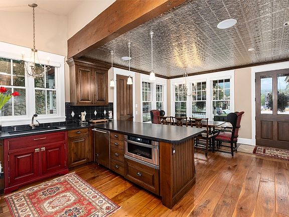 With breathtaking vistas of the Breckenridge Ski Resort and its surrounding peaks, the distinctive ‘Harris Haus’ is ready to be your alpine retreat. Located in-town in Breckenridge’s beloved historic district, this elegant home seamlessly blends Victorian charm with modern luxury. The thoughtfully designed layout highlights magnificent mountain views, and balances open-concept living areas with more intimate spaces. Western accents including exposed timber beams, local granite fireplaces, custom woodwork, and a tinplate ceiling evoke Breckenridge’s frontier town heritage, while a dine-in chef’s kitchen and two main floor living spaces bring contemporary convenience. Two sumputous bedroom suites, both located on their own floor, offer great privacy. A well-appointment guest bedroom and large bunk room, each with their own full bath, provides plenty of space for hosting family and friends. A historic mining cabin on the property has been reimagined as a studio ADU, with a kitchenette and full bath making for a charming in-law suite or third living room. Private outdoor spaces with big views are hard to find in-town, and the home’s wraparound front porch, landscaped yard, expansive patio, and heated driveway add incredible value. Immaculately maintained with a fantastic location, this spectacular property captures the essence of ski town living. Situated only three blocks from Main Street, the gondola, dining, and shopping are just steps from your front door. Enjoy world-class outdoor recreation year-round with direct access to Breckenridge’s ski slopes, hiking trails, bike paths, gold-medal fly-fishing waters, and more. Set up a private viewing today, and discover all this exquisite mountain home has to offer.