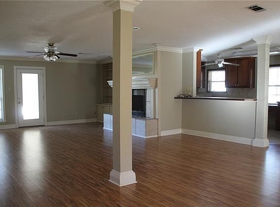 Outside patioOpen floor planFenced backyardOffice nookHuge denBrick homeLarge primary bedroom