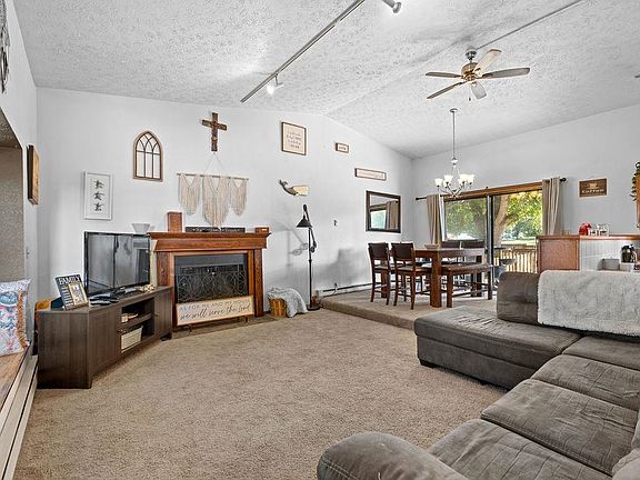 Spacious cedar 4-bedroom home (2 non-conforming) situated on 2 corner lots with fenced backyard and only 1 block from the school. This home is light and bright with an open concept and vaulted ceilings throughout the main floor. The kitchen includes a high-end Jenn-Air glass top range, breakfast bar, and plenty of cabinets for storage. The great room includes a cozy fireplace, a window seat, and is the perfect setup for entertaining. Large primary bedroom with en suite and private deck with stunning skyline views. Large downstairs family room with exterior entry. Basement includes laundry room, pantry, storage & freezer space, and 2 non-egress bedrooms. Enjoy the large deck that opens to the landscaped backyard with a storage shed and a chicken coop.