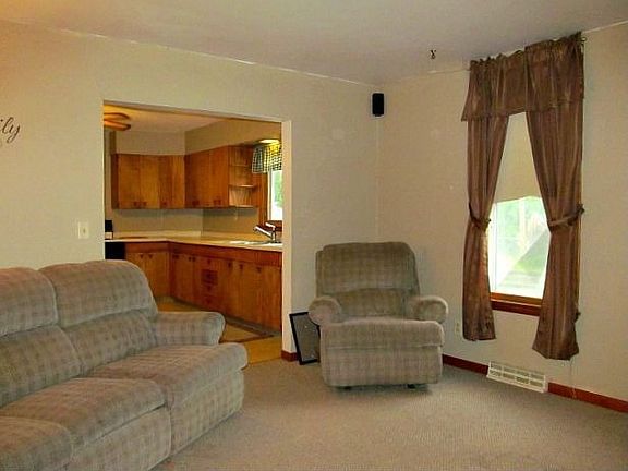 2 bedrooms on main level and large room in basement with a closet that could be a 3rd bedroom or family room. Hardwood floors under living room and front bedroom. Large eat in kitchen with plenty of cabinet space. Attached one car garage with mud room area before entering house. Newly renovated extra large bathroom plus extra shower located in basement too.