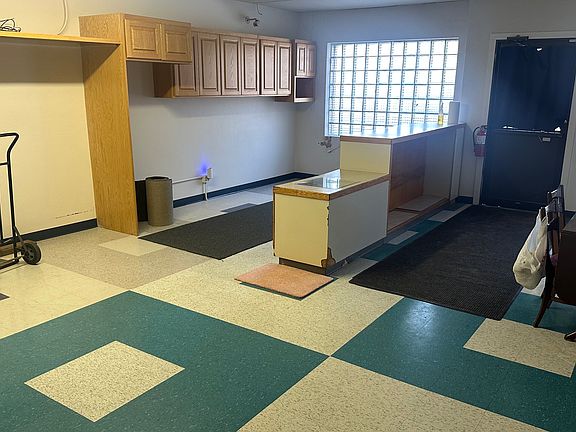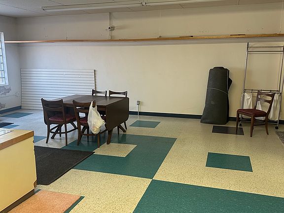 Commercial building converted into a simple studio apartment. Walls are made by hanging curtains from ceiling in any arrangement you want. Office, living room, dining room, more bedrooms, craft room. What ever you want. Front of building can be a personal business with Main Street parking right outside door. Bar/Restaurant across the street and post office next door. No pets allowed.