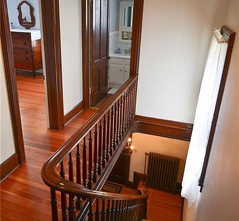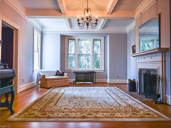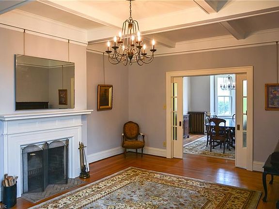 A Gorgeous Historical Gem built in the late 1800's. The house is walking distance to the banks, shops, the park, Westminster College, and schools located in quaint New Wilmington Boro. It has 10 ' high ceilings and tall double hung windows, pine and oak timbered floors which have been beautifully refinished. The striking features of this house include front and back covered porches, a grand entry with sweeping banister, a deep-coffered ceiling in the spacious living room with a dec fireplace, and a working glass pane pocket door opening to the large dining room. The updated kitchen features custom made cabinets, a granite counter top and appliances blending together the original wall cupboards to enhance the colonial charm. The luxurious room sizes, fresh decorator paint colors, a claw foot bathtub, thick walls, gas ports and wide baseboards adds to the beauty of this truly pristine colonial home. It also has an unique 2 car garage with a second floor. Home Warranty Included