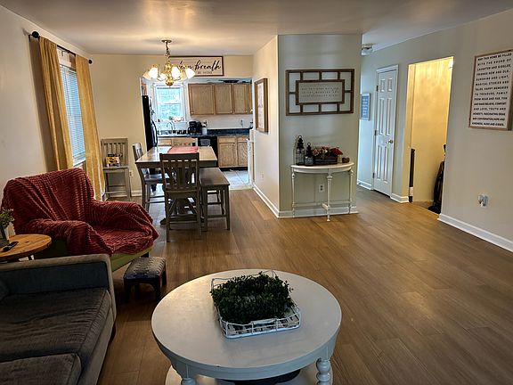3 bedroom, 2.5 bathroom twin home. First floor has eat in kitchen, Living room and Dining room and half bathroom.There is a back deck with entry slider door from kitchen. Second floor has 3 bedrooms, hall bath. Master bedroom had full bath. House has a finished basement with washer and dryer. Off street parking