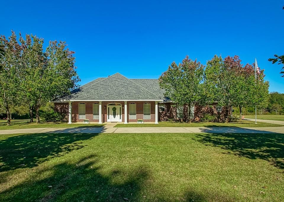 Discover serenity and space with this beautifully maintained 4-bedroom, 3.5-bath all-brick home set on 5.28 acres in the highly sought-after Grande Hills community in Bush. Nestled among majestic live oaks and pecan trees, this property offers a tranquil, covenant-protected lifestyle surrounded by nature—complete with deer, birds, and a 54-acre stocked lake ideal for fishing or paddling and all non-motorized watercraft are welcome. Inside, you’ll find a warm, inviting layout with no carpet, a wood-burning fireplace, and plenty of natural light. The kitchen features granite countertops, abundant cabinetry, and new stainless steel appliances, great for everyday cooking or entertaining. A formal dining room and dedicated office provide versatility for modern living. The spacious primary suite opens through French doors to a covered patio—your private spot to relax and enjoy the sounds of nature. The ensuite bath boasts an ADA-accessible walk-in shower, fresh paint, and thoughtful updates throughout.