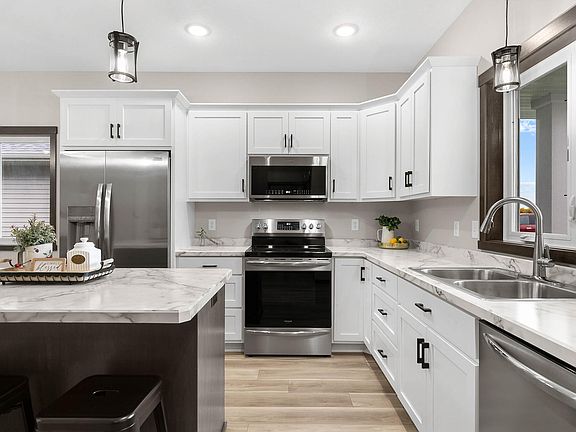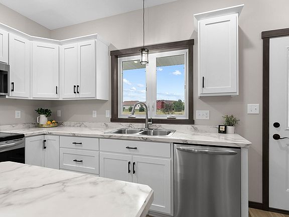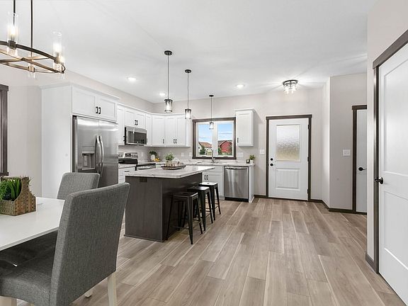 Brand new 2 bedroom, 1 bath patio home in an association with snow/lawn care! Open floor plan, vinyl plank flooring & 9 foot high ceilings. Kitchen with white custom cabinets, stained center island & stainless appliances. Living room has an electric fireplace & walks out to a back patio. Main bath has porcelain tile floors with a roll in shower. Spacious owner’s room with walk-in closet which doubles as a safe room. 2 stall insulated garage with floor drain. Steel siding, stone, sprinkler system and seeded & landscaped yard. $13,000 TIF credit to buyer if buyer meets income qualification.