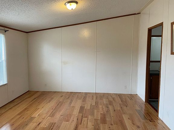 Great three bedroom, two bath double wide with a split bedroom floor plan. This home has beautiful hardwood floors and an open floor plan. The primary suite has a private en suite bathroom and large closet. Two additional bedrooms (with wood floors!) and an additionl bathroom round out the interior. Outside has a huge deck out front with views of Rhodhiss Lake.