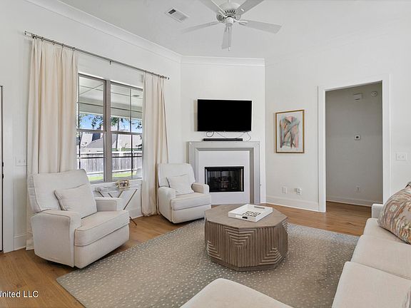 • Outdoor Living: The large covered back porch with a fireplace, mantle and TV hookup overlooks an extended patio, perfect for grilling and entertaining. The fully fenced, flat grassy backyard offers ample space for outdoor activities.