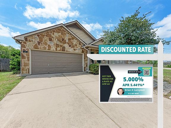 This house comes with a REDUCED RATE as low as 5.125% (APR 5.553%) as of 09/18/2025 through List & Lock™. This is a seller paid rate-buydown that reduces the buyer’s interest rate and monthly payment. Terms apply, see disclosures for more information. Sweet 3 bedroom, 2 full bath home with 2-car garage all on one level. At the end of the street with no neighbors on one side or to the back. This one is ready for new owners to give it all the special touches to make it uniquely theirs! Stained concrete floors throughout so no dirt-catching carpet! All appliances to convey! Stainless GE range & microwave, Samsung stainless 3-door refrigerator/freezer & 3-rack dishwasher. Stacked washer & dryer, too! Front facing room, perfect for home office or playroom. Cabinets in garage provide lots of extra storage. Backyard pergola makes a great spot for morning coffee or a relaxing evening gathering with family or friends. In addition to the comforts of home, as a homeowner in Blanco Vista, you'll have the opportunity to enjoy any or all the amenities offered! These amenities include a Jr Olympic swimming pool along with a second pool & splash pad, a playground, picnic areas, miles of interconnected hike & bike trails, a stocked fishing pond plus the Blanco Vista elementary school. Witihin walking distance to the Five Mile Dam Park along the Blanco River. All this and just minutes away from universities, healthcare, shopping, restaruants &more! Come, make 102 Silo St. your home, your community!