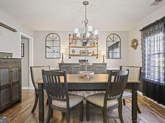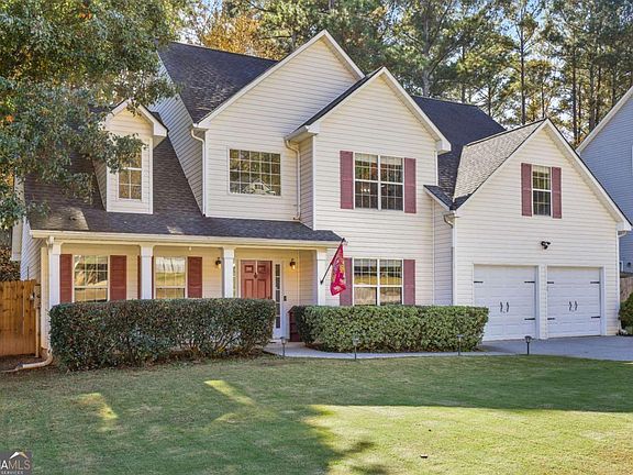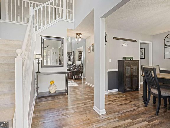 Charming and Meticulously Maintained Home. Welcome to this beautifully cared-for residence featuring timeless appeal and modern comfort. Enjoy relaxing on the inviting rocking-chair front porch, leading into a grand two-story foyer and gleaming hardwood floors throughout the main level. The main floor offers a spacious two-story living room, a cozy keeping room, and a large formal dining room-perfect for entertaining. The updated kitchen includes granite countertops, stainless steel appliances, and ample cabinet space. A main-level guest suite with full bath provides ideal flexibility for visitors or a private home office. Upstairs, you'll find a versatile loft area, two generous secondary bedrooms with walk-in closets, a full bath, and a luxurious master suite featuring vaulted ceilings, double vanities, and a separate shower and soaking tub. Additional highlights include:,New HVAC and Water Heater (2021), New LVP flooring and downstairs renovation (2022), fresh interior paint, a newer roof (2016), Updated fixtures throughout and a large, fenced double backyard backing to private woods-offering both space and seclusion.