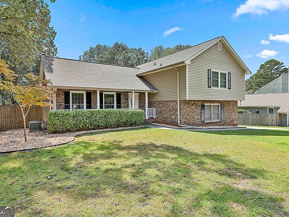 Welcome to this charming 4-bedroom home in the heart of Peachtree City, complete with a sparkling pool and inviting living spaces. Step inside from the covered front porch into the foyer, where you're greeted by a dining room, perfect for entertaining. The open-concept living room has a cozy fireplace and flows into the updated kitchen. Here, you'll find a beautifully detailed tile backsplash, an oversized island with bar seating, and abundant cabinet space. An eat-in dining area overlooks the living room, offering the ideal spot for casual meals. The main level also includes a convenient half bath and laundry closet. The spacious primary suite features an en suite bathroom with a walk-in shower and closet for plenty of storage. There are three additional bedrooms that share a full bathroom. Out back, relax on the screened-in patio with a ceiling fan or step outside to enjoy the sparkling pool. A grassy green space with a storage shed adds to the backyard. Recent improvements include a new roof, new electrical panel, new shed, and fresh siding. Southeast Mortgage is our preferred lender. If buyer chooses to work with them, Southeast Mortgage will provide 1% credit up to $5,000. Reach out to the listing agent for more information.