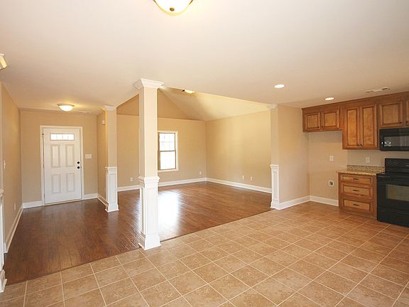 New open floor plan 3/2 with covered front and back porches. Large lot in quiet neighborhood. Double vanity in master bath and garden tub. Laminate in greatroom and halls, carpet in bedrooms and tile in wet areas. Spacious kitchen with large pantry. Sprinkler system in front and side yards. USDA loan program.