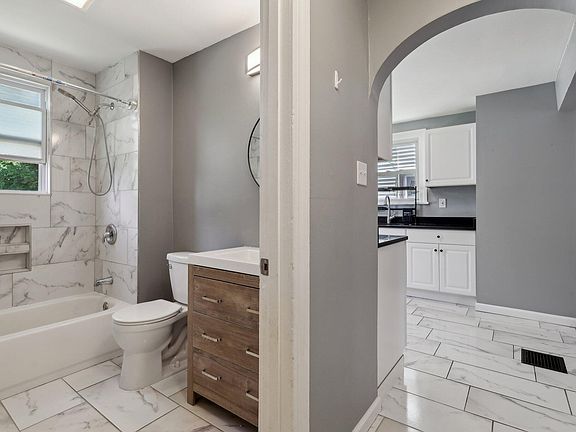 100 percent Financing Available Through KY Housing! This true 4-bedroom home features a remodeled kitchen with granite countertops, stainless steel appliances, & tiled flooring, along with a renovated bathroom offering a custom tiled shower/tub & stylish finishes. Enjoy ample natural light, neutral decor, arched doorways, & maintenance-free vinyl plank flooring throughout. The home includes an oversized detached garage, a large unfinished basement, privacy fenced yard, & a rear patio perfect for relaxing or entertaining. Ceiling fans throughout provide year-round comfort! A great opportunity in a convenient Erlanger location.