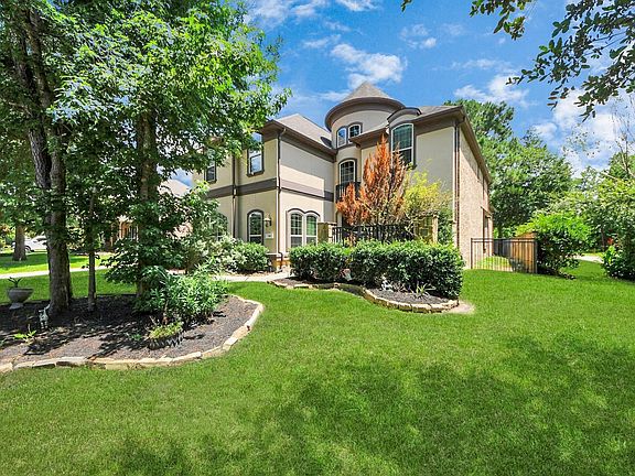 Elegance unfolds at every turn in this refined Woodforest residence, set on a corner lot and wrapped in a sophisticated blend of brick, stone, and stucco. Inside, soaring ceilings and a dramatic staircase set the tone, while wide-plank hardwood floors lending warmth and texture. The study features striking wood beams, and the kitchen—with a generous granite island—is outfitted with maple cabinetry. Designed with intention, the layout flows effortlessly among four spacious bedrooms, three and a half baths, and a three-car garage. Upstairs, the game room and media room offer flexible, elevated living, complemented by a built-in workstation. Outdoors, an expansive covered patio and upper-level balcony create serene escapes, perfect for morning light or evening breezes. Behind the scenes, energy-efficient systems ensure lasting comfort. This is a home that speaks softly yet leaves a lasting impression—crafted for those who appreciate understated luxury and lasting design.