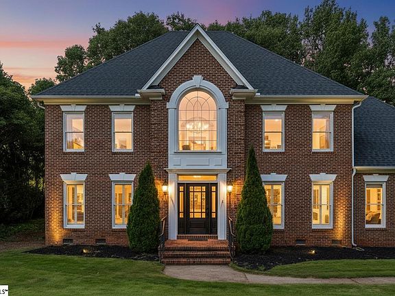 Stately home located in the sought-after Sugar Mill neighborhood and zoned for award-winning Riverside schools! A sunny two-story foyer welcomes guests into a thoughtfully designed floor plan featuring newly refinished hardwood floors throughout the main level and stairs and new carpet in the flex room. The formal living room offers flexibility as a home office, while the spacious dining room is perfect for hosting gatherings and holiday meals. The open-concept great room features a gas log fireplace flanked by built-in bookshelves and flows seamlessly into a generous breakfast area and kitchen. The kitchen boasts granite countertops, a central island, walk-in pantry, and a convenient half bath nearby. A 2-car garage with a yard door adds functionality. Upstairs, the spacious primary suite includes a wall of closets and an ensuite bath with dual vanities, a garden tub, separate shower, and a walk-in closet. Three additional bedrooms share a full hall bath with a tub/shower combo—one of which can easily serve as a flex space. The second-floor laundry and central vacuum system provide added convenience. Enjoy outdoor living on the vaulted screen porch, which opens to a patio and private, tree-lined backyard. Residents of Sugar Mill enjoy a robust amenity package including a clubhouse, pool, tennis courts, sidewalks, and streetlights—perfect for jogs or evening dog walks. Ideally located on Greenville’s popular Eastside, close to top-rated schools, shopping, dining, medical facilities, and with easy access to the interstate—this home offers the total package! Some photos virtually staged.