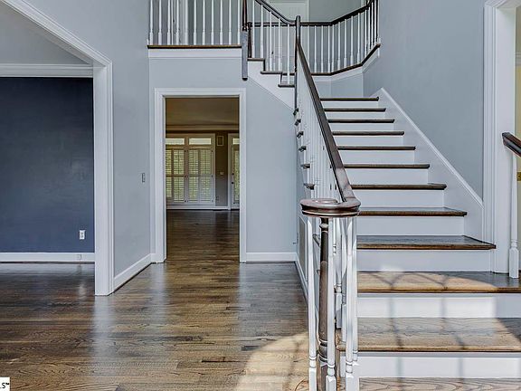 Stately home located in the sought-after Sugar Mill neighborhood and zoned for award-winning Riverside schools! A sunny two-story foyer welcomes guests into a thoughtfully designed floor plan featuring newly refinished hardwood floors throughout the main level and stairs and new carpet in the flex room. The formal living room offers flexibility as a home office, while the spacious dining room is perfect for hosting gatherings and holiday meals. The open-concept great room features a gas log fireplace flanked by built-in bookshelves and flows seamlessly into a generous breakfast area and kitchen. The kitchen boasts granite countertops, a central island, walk-in pantry, and a convenient half bath nearby. A 2-car garage with a yard door adds functionality. Upstairs, the spacious primary suite includes a wall of closets and an ensuite bath with dual vanities, a garden tub, separate shower, and a walk-in closet. Three additional bedrooms share a full hall bath with a tub/shower combo—one of which can easily serve as a flex space. The second-floor laundry and central vacuum system provide added convenience. Enjoy outdoor living on the vaulted screen porch, which opens to a patio and private, tree-lined backyard. Residents of Sugar Mill enjoy a robust amenity package including a clubhouse, pool, tennis courts, sidewalks, and streetlights—perfect for jogs or evening dog walks. Ideally located on Greenville’s popular Eastside, close to top-rated schools, shopping, dining, medical facilities, and with easy access to the interstate—this home offers the total package!