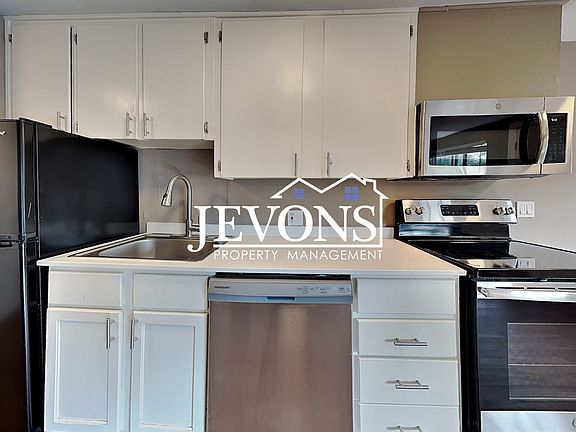 - Kitchen: Refrigerator, range, dishwasher, and microwave included