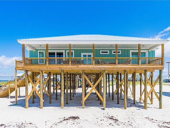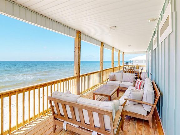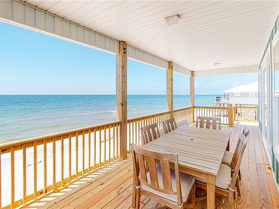 Wake up every morning to a beautiful view and a white sandy beach in your front yard! The spectacular views and the wonderful sounds of the waves vie for attention in this fabulous Gulf home! Watch the dolphins and the shrimp boats from your porch and enjoy the serenity of beach living at its finest. Inside, you'll find a light-filled 4 bed, 4 bath open floor plan with high ceilings, recessed lighting, tile flooring, and coastal-chic décor through out. Every bedroom features its own private en-suite bath. You'll love the expansive great room that's open to the kitchen and dining with the focal point being the ship lapped vaulted ceiling and stunning Gulf views. The kitchen is a chef's dream with white cabinets, stainless steel appliances, quartz counter tops, an island, and a seamless flow from the kitchen to the living room. Sold beautifully furnished, it has everything you need to start enjoying Island life. As your personal beach house or as a proven vacation rental, you'll enjoy the peace of mind and lower insurance rates that come from a Gold Fortified Home. This stunning home is turn-key and already generating substantial rental income with great online reviews. Properties like this don't come along very often, so hurry to Dauphin Island, the official Sunset Capital of Alabama, where the pace is slow and life is sweet. All information provided about the property, including but not limited to square footage, is deemed reliable but is not guaranteed and should be independently verified.