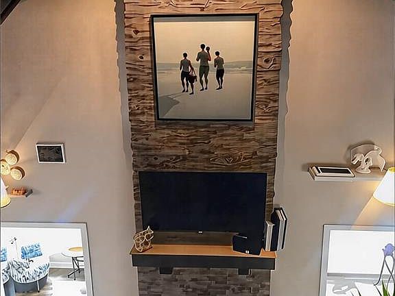 Boat slip and dockStunning viewsInterior kitchenSoaring ceilingsPlenty of cabinetryWooden accents