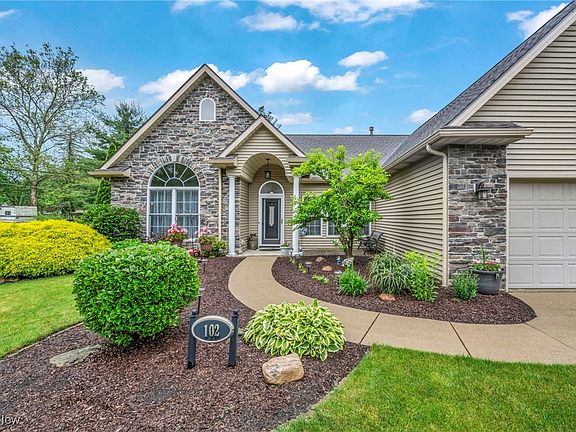 Welcome to 102 Timber Ridge Dr, Beautifully maintained ranch-style home in the desirable Timber Ridge Subdivision of Elyria Township and the sought-after Midview School District. Situated on a spacious 0.75-acre corner lot in a quiet cul-de-sac, this stunning 3-bedroom, 2-bath residence offers 2,057 square feet of single-level living space, thoughtfully designed for comfort and functionality. Built in 2005, this home showcases quality craftsmanship and numerous updates that make it truly move-in ready. From the moment you arrive, you’ll appreciate the inviting curb appeal, highlighted by the stone and vinyl siding exterior, manicured landscaping, and covered front porch. Step inside to discover a welcoming foyer that leads to expansive living spaces with rich wood and ceramic flooring. The spacious living room features a cozy gas fireplace and large windows that flood the space with natural light. The adjacent family room and dining area provide plenty of room for entertaining. The chef’s kitchen boasts granite countertops, a center island, pantry, stainless steel appliances including a range, microwave, refrigerator, and dishwasher, plus an eat-in area perfect for casual meals. The luxurious primary suite offers a serene retreat with plush carpeting, a walk-in closet, and a private en suite bath with double vanities and ceramic tile finishes. Two additional bedrooms and a full hallway bath provide ample space for family, guests, or home office needs. The laundry area is conveniently located in the main bathroom and includes washer hookups. Enjoy summer days on the covered back patio or cool off in the above-ground pool. A large shed adds extra storage for outdoor equipment. Additional features include a 2-car attached garage, central air, forced air heating, ceiling fans, energy-efficient construction and insulation, and public water/sewer. Conveniently located near shopping, parks, highways, and more. Don’t miss your chance to call this exceptional property home!!
