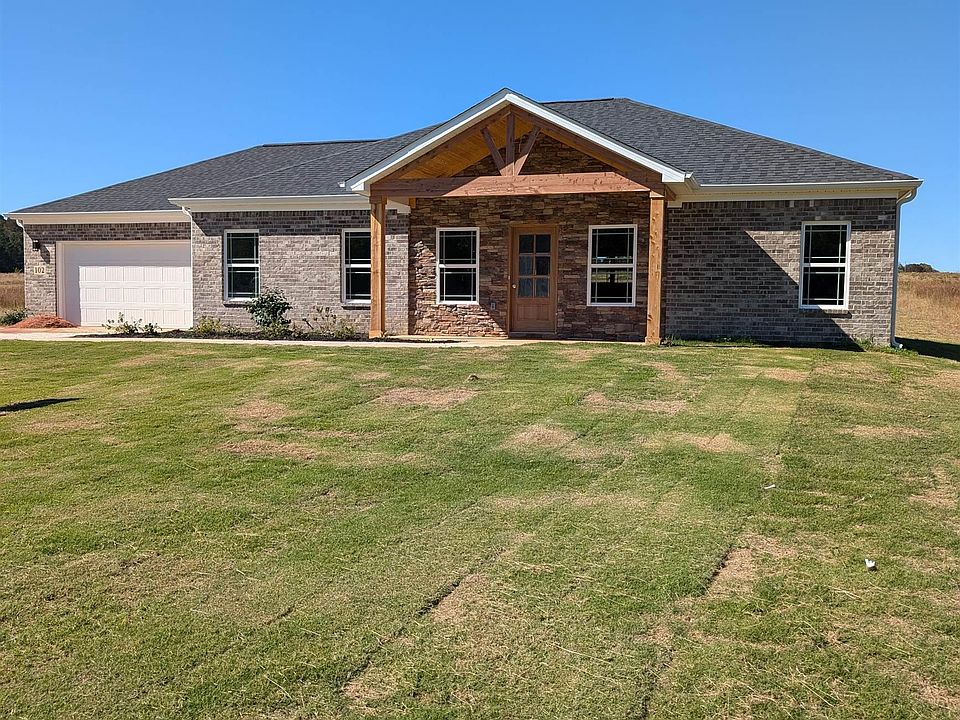 Under Construction-RARE FIND 1 ACRE HOMESITE!! Restricted community with NO HOA FEES! OPEN CONCEPT 3 BR, 2 FULL BTH FULL BRICK AND ROCK HOME WITH SOLID CEDAR COLUMNS BY DACE DESIGNER HOMES! GRAND!!-HARDWOOD FRONT DOOR AND CUSTOM ENTRY WAY! $3500 YOUR WAY- Closing costs, ect. CUSTOM DESIGNER FEATURES INCLUDE- DESIGNER LIGHTING, PREMIUM VINYL PLANK, KITCHEN ISLAND, FOREVERMARK SOFT CLOSE CABINETS -Upgraded GRANITE! 2 FULL BATHS. OPEN CONCEPT LIVING ROOM/DINING ROOM/KITCHEN. SEP PANTRY! MST BR AND LR HAVE CEILING FANS. HUGE COVERED BACK PORCH! LAUNDRY ROOM HAS A DROP ZONE. OVERSIZED WIDE GARAGE AND GARAGE DOOR. WIDE DRIVEWAY AND EXTENDED TURN AROUND!