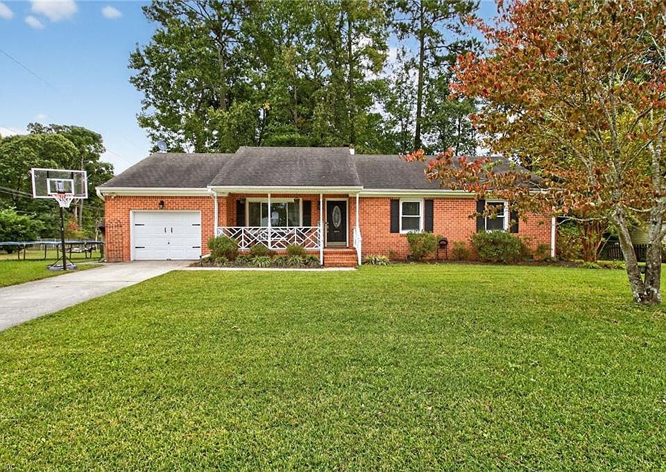 Welcome to this beautiful ranch-style home, move-in ready and primed for your personal touch! Pride of ownership is evident throughout, including a versatile FROG (flex space) ideal for a home office or 4th bedroom. The open-concept kitchen features painted cabinets, updated hardware, granite countertops, a stylish tile backsplash, and a stainless steel sink. Recent upgrades include new fixtures in key areas, granite vanities in bathrooms. Relax by the wood-burning fireplace or enjoy the breeze on the screened-in back porch. Located in a tranquil, well-established neighborhood in Suffolk, close to restaurants, shopping, and quick highway access to Hampton Roads. This inviting home offers comfort and convenience—schedule your tour today!