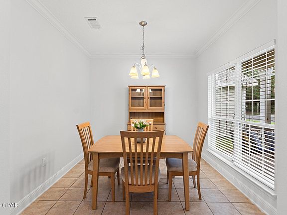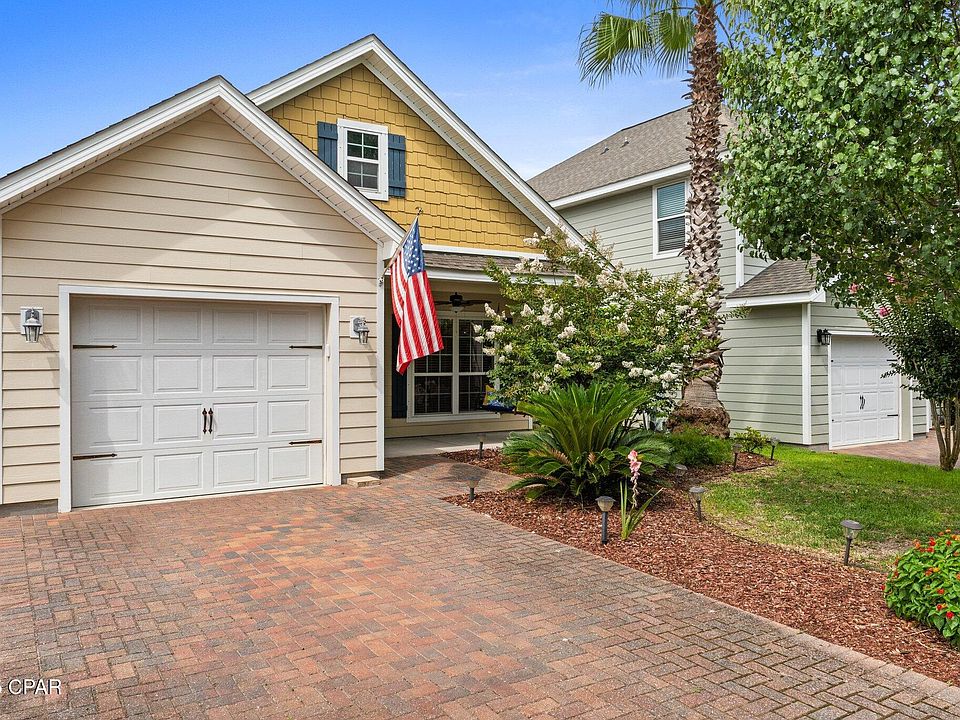 This home features a versatile floor plan with 1323 square feet of freshly painted living space, including 3 bedrooms and 2 bathrooms, If you are looking for a primary home or a second vacation home, this is the one to see. There is a bonus room that can be used for a dining room or office space. The shaded front porch has a swing to enjoy sunsets and a glass of sweet tea! The backyard offers potential for transformation into a serene outdoor retreat. Enjoy this friendly community that has resort-style amenities with access to a community pool, tennis courts, pickle ball, fishing dock, and clubhouse. Additionally, the property is conveniently situated for shopping and dining options at 30A or Pier Park. 102 Turtle Cove is only 1.1 miles from Beach Access 86 so you can walk or even take a golf cart ride to enjoy the beach. This home is perfect for buyers looking to create their dream space in a vibrant community with all the conveniences of a beach lifestyle!