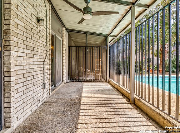 Discover this charming, well-maintained 2-bedroom, 1.5-bath condo tucked away in the boutique community of Olmos Park Townhomes. Perfectly positioned just south of the McCullough Ave roundabout, this hidden gem offers privacy and lush surroundings while being steps away from some of the best dining, shopping, and parks in San Antonio. Step inside to a sun-filled living space, where floor-to-ceiling mirrors reflect natural light throughout the open first floor. Tile flooring adds to the easy, low-maintenance lifestyle, and a convenient half bath is located downstairs. The breakfast area opens through sliding glass doors to a covered porch-ideal for morning coffee or evening relaxation-with peaceful views of the manicured landscaping and community pool. Upstairs, you'll find two generously sized bedrooms, including an oversized walk-in closet that offers the potential to be converted into a second full bath. Additional features include assigned covered parking, guest parking at your doorstep, and community amenities such as a pool, laundry facilities, water service, and trash collection. Enjoy unbeatable access to Downtown San Antonio, major highways, Trinity University, UIW, Central Market, the Zoo, Brackenridge Park, San Pedro Springs Park, and the Landa Library. Whether you're looking for a serene retreat or a prime location near the city's best offerings, this condo has it all.
