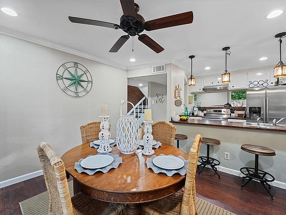 Welcome to your peaceful getaway in Cape Royale’s Harbor Villas, just moments from the marina and Lake Livingston! This charming three-story townhome blends classic character with modern updates including renovated kitchen, bathrooms, and flooring. The inviting living area features soaring ceilings, exposed brick, and a cozy fireplace—perfect for relaxing after a day on the lake. The remodeled kitchen offers stainless steel appliances, butcher block countertops, and stylish pendant lighting. Retreat upstairs to a serene primary suite with its own balcony overlooking the woods. A second bedroom and updated baths provide comfort for guests or a home office. Enjoy Cape Royale’s golf cart-friendly streets, lake access, and nearby marina. Priced to sell and offered as-is with major updates complete!