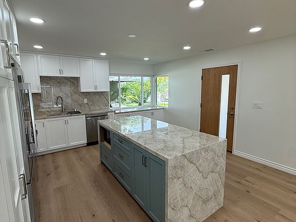 Luxurious Deluxe Single-Level End-Unit Condo Welcome to this rare offering of a freshly renovated, single-level end-unit condo with private entry, kitchen, heating and air, laundry, and bathroom to die for. Thoughtfully designed with spectacular open floor plans, this residence features expansive living spaces filled with natural light. The kitchen is a showpiece, boasting a massive quartz island, all-new cabinetry, top-of-the-line appliances, and a pantry. It flows seamlessly into the spacious living room perfect for entertaining. The bathroom is a true retreat, complete with a large double vanity, light-up mirror, frameless walk-in shower, and rain shower head with handheld wand. Plus two spacious bedrooms with ample closet space with access to patio. Additional highlights include: All-new flooring throughout Custom blinds, including automatic sliders Fresh paint, updated lighting, and modern plumbing fixtures This property has an ADU on the lot with separate entry and only shares one wall with the ADU. Enjoy resort-style amenities with a community pool, clubhouse, and 9-hole golf course. All of this, just minutes from shopping, Ventura Harbor, and the beach!