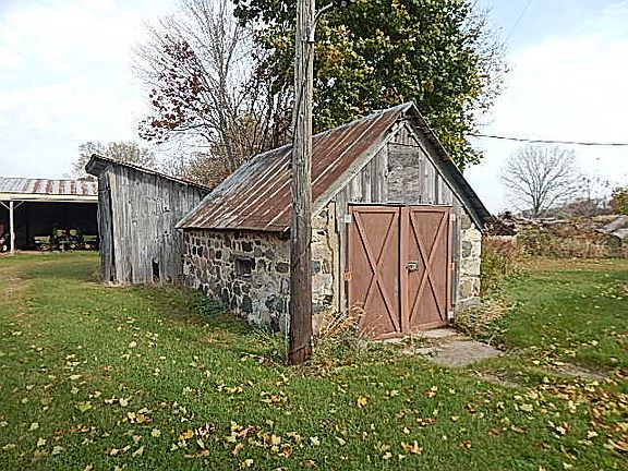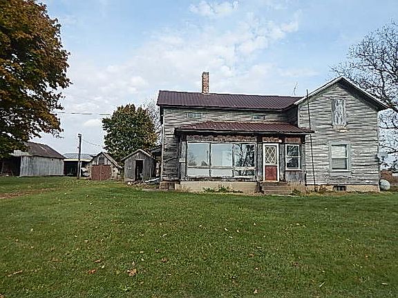 It begins with an old farm house that is only used for a hunting cabin presently and is need to some TLC if it were to be more than that. A few old outbuildings go along with it and that sits right up by the road and in front of the 50+ acres of high quality farm ground that has frontage on a nice paved country road and brings in a good farm lease income for the owners while also providing the GREAT DEER that live in the area an unlimited source of food.