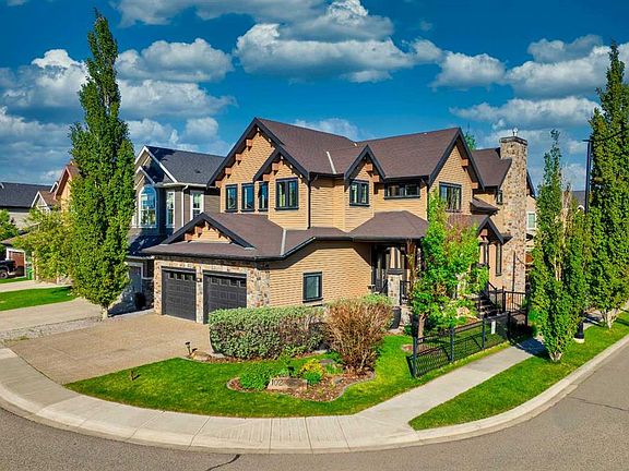 Welcome to luxury living in the heart of Coopers Crossing. This stunning, fully developed estate home offers over 4,000 sq. ft. of luxurious living space, perfectly designed for family life and entertaining. Designed with exceptional attention to detail and loaded with premium upgrades, this home delivers a perfect balance of function, comfort, and style. Step inside to discover Brazilian mahogany hardwood floors, 9’ ceilings, and built-in ceiling speakers with zone control throughout the main level. The bright and open floor plan features a cozy living room with a gas fireplace, a private front office, and a powder room. The kitchen is made for entertaining, showcasing stainless steel appliances, double wall ovens, two dishwashers, granite countertops, and a massive island perfect for gathering. A walk-through pantry connects to a well-organized mudroom and a hidden storage room with secondary laundry hookups. Upstairs, the spacious primary suite offers a true retreat experience with a spa-inspired 5-piece ensuite, a walk-through closet with custom built-ins, and direct access to the upper laundry room. You’ll also find three additional generously sized bedrooms and a 4-piece bathroom with heated tile floors. The fully finished basement is an entertainer’s dream, featuring in-floor heating, a large rec room, a wet bar with a stunning Black Marinace stone countertop, a soundproofed theatre room wired for surround sound, and a full 3-piece bathroom. Enjoy your low-maintenance backyard oasis with composite decking, custom stone patio, underground sprinklers, and a convenient walk-through shed for storage and rear access. Additional features include: Heated floors in mudroom, hidden room and main floor pantry Oversized heated garage with in-floor heating and professional epoxy flooring Dual furnaces and A/C units Water softener and boiler system for in-floor heating Central vacuum system Thoughtful built-in storage throughout Perfectly located within walking distance to schools, playgrounds, scenic pathways, and Coopers Promenade shops and services, this home truly has it all.