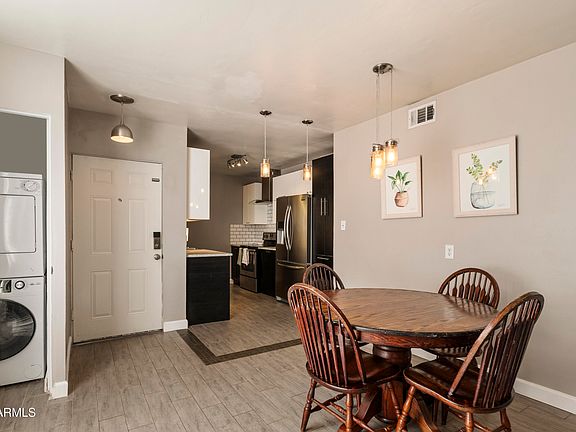 This centrally located 2-bed, 2-bath mid-century modern residence offers an open floor plan, in-unit laundry, a community pool, updated bedroom flooring, and a desirable first-floor location with no stairs for easy access. Recent seller improvements include fresh paint in the living room, bathrooms, and kitchen and a washer and dryer replacement within the past year. The HOA has also made significant updates, including a new roof, a replaced main water heater, and ongoing exterior repainting to further enhance the property's appeal. Ideally situated just steps from Murphy's Bridle Path, local farmers markets, and some of Phoenix's most popular dining and entertainment venues — all within the highly regarded Madison School District.