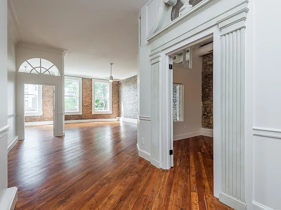 Open floor planOriginal exposed brickSleek stainless steel appliancesGranite countertopsElegant hardwood floorsCustom closetsBuilt-in bookshelves