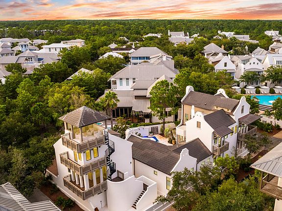 True elegance and refinement on one of Rosemary Beach's premier estate homes. Situated on one of Rosemary's largest homesites, this private, gated compound is complete with a 7BR/7.5BA, a two car garage with four additional spaces inside the gate, a four story tower overlooking sunsets over the Gulf of Mexico and the largest private pool in Rosemary Beach. A rare opportunity to own a very special primary residence or beachside retreat.
