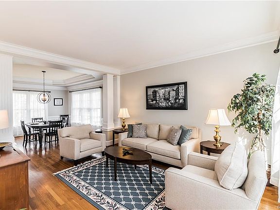 ESCAPE CITY STRESS living at this picturesque transitional nestled on .5 acres of lush natural surroundings in Colonial Heights. Built in 2001, the freshly painted open flowing interior features soaring ceilings and hardwood floors throughout the 1st level. The family rm, with its gas lit fireplace, new carpet and built-ins, adjoins the casual dining area and eat-in kitchen with SS appls, recessed lighting, lots of cabinetry and a pantry. The formal dining rm with wainscoting, tray ceiling and NEW modern chandelier adjoins the formal living rm with Dorian columns. Enter the private office through the Fr. doors. The 2nd level is devoted to serenity with an intimate master suite which has a sitting area, dbl closets and a priv bathroom with a garden tub, separate shower and dbl vanities; four add'l bedrooms; a guest bathroom; and a laundry room. The 3rd level bonus room has two skylights, a full bathroom and attic access. Ready to enjoy the outdoors? Sip lemonade during a breezy summer day on the spacious backyard deck overlooking the fenced yard with detached storage shed. This move-in ready home is ideally located near shopping, restaurants and I-95. Protected by 2-10 HBW.