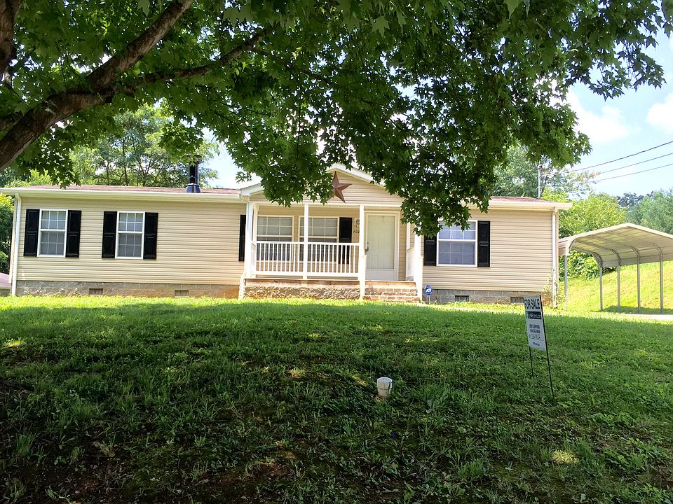 Practically new 3 bed 2 bath home in the city of Kingsport on an almost .6 acre lot! This split bedroom design home offers wood beam accents, new wood grain floors, open floor plan, washer&dryer included, walk in closets in each bedroom, and a huge master with walk in closet and separate oversized shower and tub! All that plus a great covered front porch with vinyl railing, detached carport, huge back deck with rebar pickets and custom pergola, storage building, concrete driveway, and a permanent foundation for the home!