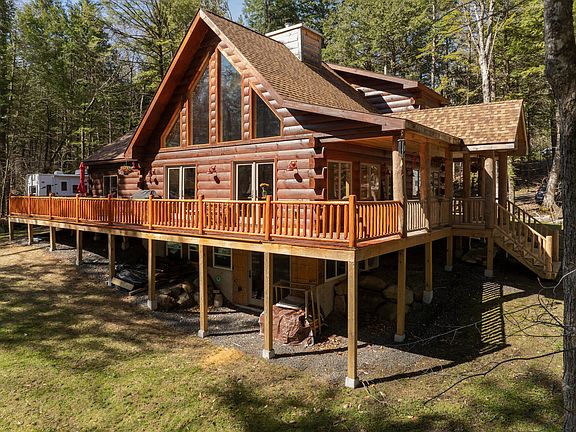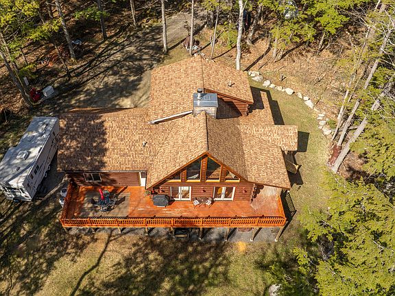 Lakefront Dream ~ Presenting this beautiful custom built home located in the well-established Sebago Cove Estates neighborhood. This 2021 3-bedroom log-style retreat is situated on 2.46 acres with 208ft of owned water frontage on Sebago Cove and offers direct access to Big Sebago Lake and access to Brandy Pond and Long Lake through the Songo River. The first floor offers a spacious primary bedroom suite with a brand-new full bath and double vanities, a half bath and mudroom-laundry area, with direct access to the 2-car garage and wrap-around deck. The beautiful living room is full of natural light and opens to the eat-in kitchen with granite counters, plenty of cabinet storage, an impressive fireplace and lake views, perfect for entertaining. The second floor offers 2 additional bedrooms and a bath for you or your guests to stay and visit. Sit back and relax on the spacious deck, perfect for a summer barbecue! Enjoy fishing, paddle boarding, kayaking and swimming off your own included private dock or just a very short walk to the association common area for your larger boat if desired. The unfinished walkout basement offers additional potential living space for future expansion or plenty of storage space. Heat pumps throughout and a whole home generator make this home very energy efficient. Paradise awaits, don't miss your chance for your own piece-de-resistance!