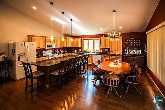 Newer home on Winton Point with 80 feet of shoreline on Fall Lake. This 2 bBR, 2 BA home was custom built in 2009 and features one story living. There is an lake-facing great room that houses the LR, KI, and DR. Features include vaulted ceilings, top quality hickory cabinets, a large center island with seating, newer appliances including dishwasher, recessed lighting, a wood burning stove, and lots of space to enjoy the lake view! Large Marvin windows and a sliding door towards the lake. A center hallway takes you to the 2 large BRwith their own private BAs. A jacuzzi tub with separate shower in the master bedroom. There is also a large den that could be used as a 3rd bedroom if needed. Also, an attached 3 plus stall heated garage/workshop. Completely finished and huge! The home is very efficient and has in-floor radiant heat. Steel roof. You can walk right from the house to your own private lakeshore that has a large roll-in dock.