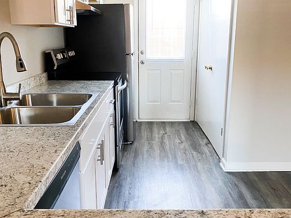 New countertopsSmall enclosed patio areaNew windowsPlumbing fixturesStainless steel appliancesBack door