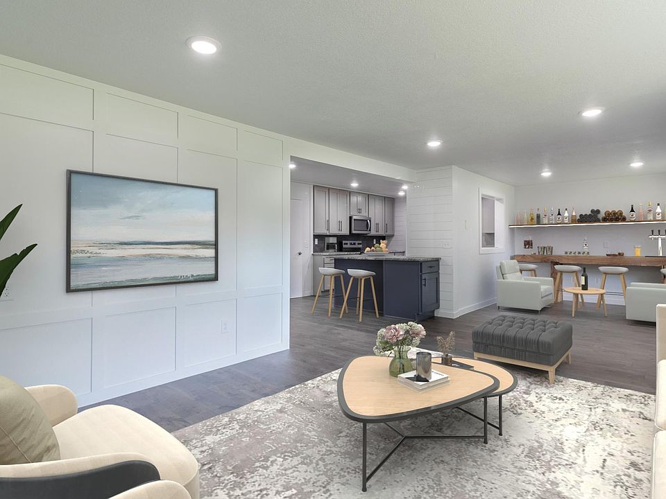 Prepare to be impressed by this freshly renovated home offering a staggering nearly 3,000 finished square feet of beautifully updated living space. With 2,296 sq ft on the main floor alone, this spacious residence has everything you’ve been looking for—and more. The heart of the home is a showstopping custom kitchen featuring exquisite leathered granite countertops, custom cabinetry, brand new stainless steel appliances, a slate tile backsplash, and a walk-in pantry. New laminate flooring runs seamlessly throughout the home, adding both style and durability. Enjoy not one, but two inviting main floor living rooms, plus a versatile flex space perfect for a bar area, game room, office, or craft room—whatever suits your lifestyle! With four main-floor bedrooms, there’s room for everyone, including a private primary suite with a large walk-in closet and a luxurious en-suite ¾ bath complete with a stunning tiled shower. Downstairs, a massive 43x11 family room offers endless possibilities for entertaining, play, or relaxation, along with an additional bedroom for guests or extended family. Outside, the oversized lot provides ample room to roam, a large storage shed, and maintenance-free siding for peace of mind. This home is the perfect blend of modern style, thoughtful design, and spacious living