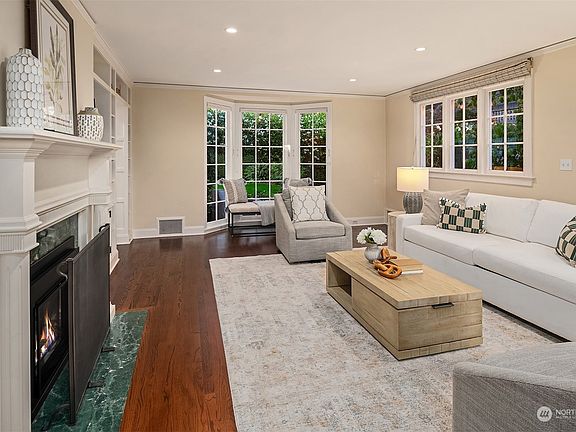 This sun-filled home effortlessly combines classic charm with modern elegance. The bright kitchen features marble countertops, a copper sink, a Wolf range, and a Sub-Zero fridge. The inviting living room, warmed by a cozy gas fireplace, creates a perfect space for relaxation. Upstairs, the primary suite is a serene retreat with a custom bath, heated floors, a rain shower, and a walk-in closet. Two additional light-filled bedrooms share a sophisticated bath. Outside, the fully-fenced yard leads to a detached guest suite, ideal for rental income or visitors. Situated on an idyllic elm tree-lined street, just steps from Madison Park and Madison Valley, this home offers the perfect blend of elegance, convenience, and timeless appeal.