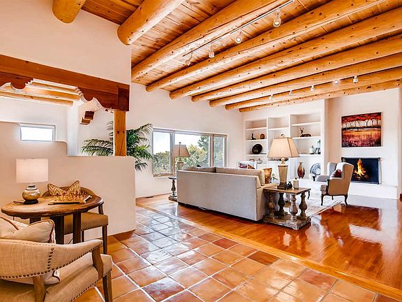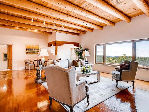 Endless views, gorgeous sunsets, city lights and minutes to The Plaza, this 3880 sq. ft. single level home with additional 800 sqft heated indoor lap pool is unforgettable. Currently owned by an Emmy award winner this Santa Fe gem is a beautifully updated and expanded 4 bedroom/4.5 bath custom Stamm home with 2 living areas. Sited high on 2.2 private,view-filled acres, one has the privacy and quiet of the country, but easy access to city life. Built in 1971 and remodeled in 1990, the living areas have high ceilings, gorgeous wood floors and a current open concept design. There is great bedroom separation with the 3 bedrooms in their own wing. Detached 2-car garage. Walk to town or park at your favorite destination in 5 minutes. A special and rare property in Santa Fe's Northeast neighborhood.