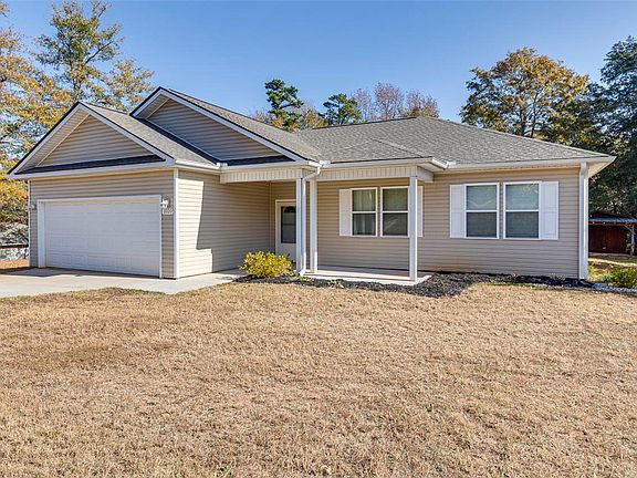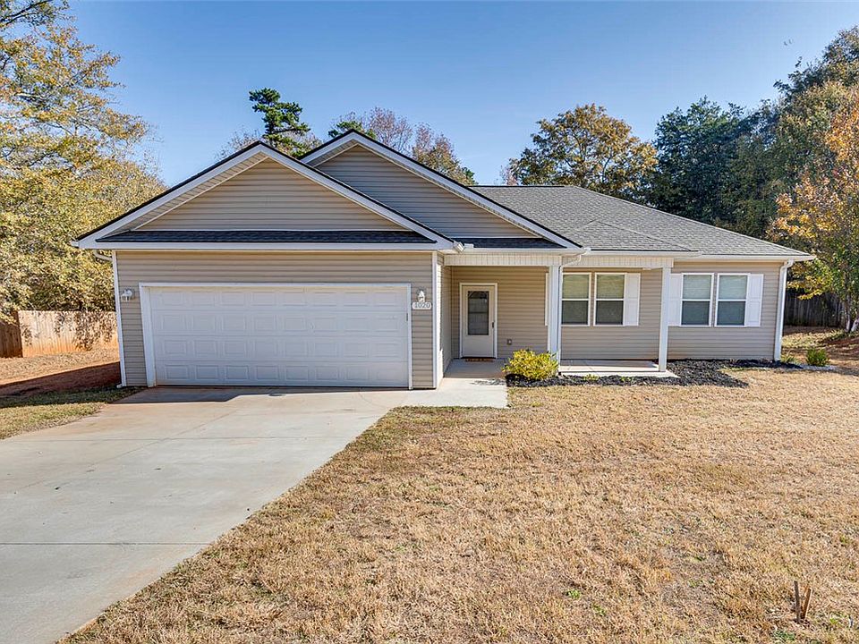 Country living so close to everything! This wonderful three bedroom, two bath home boast 9 foot ceilings and great open floorplan. The dazzling chandelier lighting above the massive island is just waiting for the cook in your family. The kitchen has white cabinets, granite countertops and beautiful tiled back splash. Refrigerator, dishwasher, stove, microwave all convey. There is a short hallway from the Great Room on both sides. One has two secondary bedrooms and a bath. The other has a door to an oversized two car garage, a laundry room and the primary bedroom. The Primary bedroom has a walk in closet and large bath. The bath has two vanities, toilet room and shower. As a special treat, there is an all weather room off of the primary, an ideal place for a studio or exercise room. From this room you can exit on to the back covered porch. There is also a storage room off of the porch and a 12 x 16 utility building with attached roof for additional equipment. This home is owned by the parents of the listing agent. 1598 sq ft as measured by listing agent - buyer must verify.