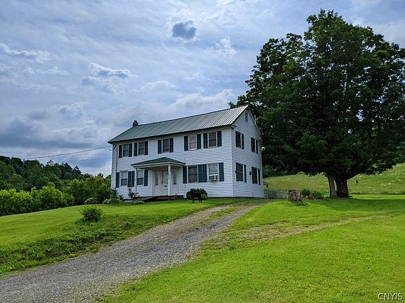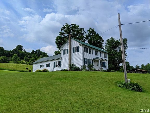 This sprawling 1800s Farmhouse including large two story BARN on over 12 acres of farmland checks all the boxes for those seeking the peace and solitude of country living. 5 minutes to the Village of Hamilton and Colgate University. Grow crops, raise animals, use the BARN for wedding and entertainment venues. The home is in very good condition. Featuring 1st floor bedroom with adjoining bathroom and three bedrooms with full bathroom upstairs. Large country kitchen with pantry and half bathroom, formal dining room, living room, 1st floor laundry and grand foyer entrance. NEW poured concrete patio and roof. 100x30 two story barn with reinforced drive in second story. The land is high quality tillable and some pasture all easily accessible from the road. Year round spring to construct a pond or ponds. Beautiful views of the valley. Located just outside of the historic Village of Poolville, a safe family oriented residential community. Camp Fiver doubles as a Park for residents of Poolville when not in session with fishing, hiking trails, basketball and tennis courts. Don't hesitate, this is the perfect retirement or change of life opportunity for you!