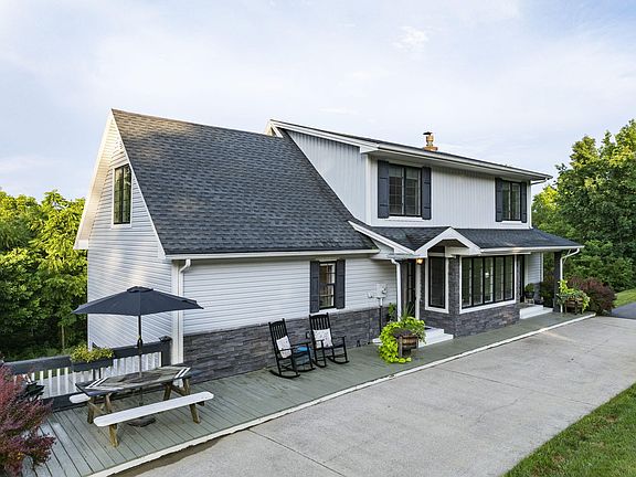 Located in a peaceful setting on over 6 acres, this beautifully updated 3 bedroom 3.5 bathroom home offers the perfect blend of modern comfort and natural beauty. This property features a mix of peaceful woods and open flat areas. Current owners enjoy gardening and created beautiful curb appeal. In addition, this property has a Pollinator Habitat filled with native grasses and wildflowers. Step inside to find updates througout (see list in documents). Easy floor plan with primary bedroom on the main floor. Two bedrooms located on the second level and a finished basement with full bathroom and wood stove for those winter nights. 4th bedroom possible in bonus room/office on second level or in basement. This home offers a show stopping kitchen connected to a large eating area and window bench. Large covered back deck to enjoy the view and lower level deck perfect for enjoying the swimming pool. ENTERTAINING DREAM! Large building sits on the property offering ample opportunity for equipment, tools, vehicles or recreational gear. High ceilings and wide access doors on both ends, make this a truly versatile building. This home is tucked away yet a minute away from Bluegrass Parkway.. Don't hesitate to take a tour of this loved home!