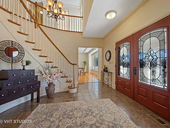 Gorgeous 2-story Colonial on 1.5 wooded acres in Muirfield subdivision. This 5 bedroom 4.1 bath stunner is freshly painted as a blank canvass. New fixtures, high-end stainless appliances including Sub Zero refrigerator, double oven, and Bosch dishwasher. Hardwood floors and wood trim throughout the first floor, as well as dramatic 9-foot ceilings. Family room features grand built-ins, wood beams across the ceiling, and one of four fireplaces throughout the home. Butler bar/serving room with sink perfect for entertaining throughout the lower level and outdoor space. Five large bedrooms with tons of storage, including master bath with 3 skylights, separate glass enclosed shower, jetted tub, and huge walk-in closet. Study features cherry built-ins, skylight for tons of natural sunlight, hardwood floors, and wood-burning fireplace. Basement features huge rec room, full bath, and tons of storage. Amazing backyard stone patio surrounded by wooded lot makes for amazing outdoor entertainment.