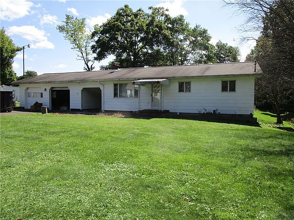 three bedroom ranch home with a two car attached garage 28 x 23 and a one car integral garage in lower level,plasted walls and hardwood floors ,first floor laundry 9x9 , lower level bath was a full bath ,the sink was removed, front porch 5x6, rear patio 13 x 10, horse barn 24 x 24 ,with some other old structures that need torn down ,appliances included ,freezer also, woodburner in lower level ,paved driveway,in the two of eldorado